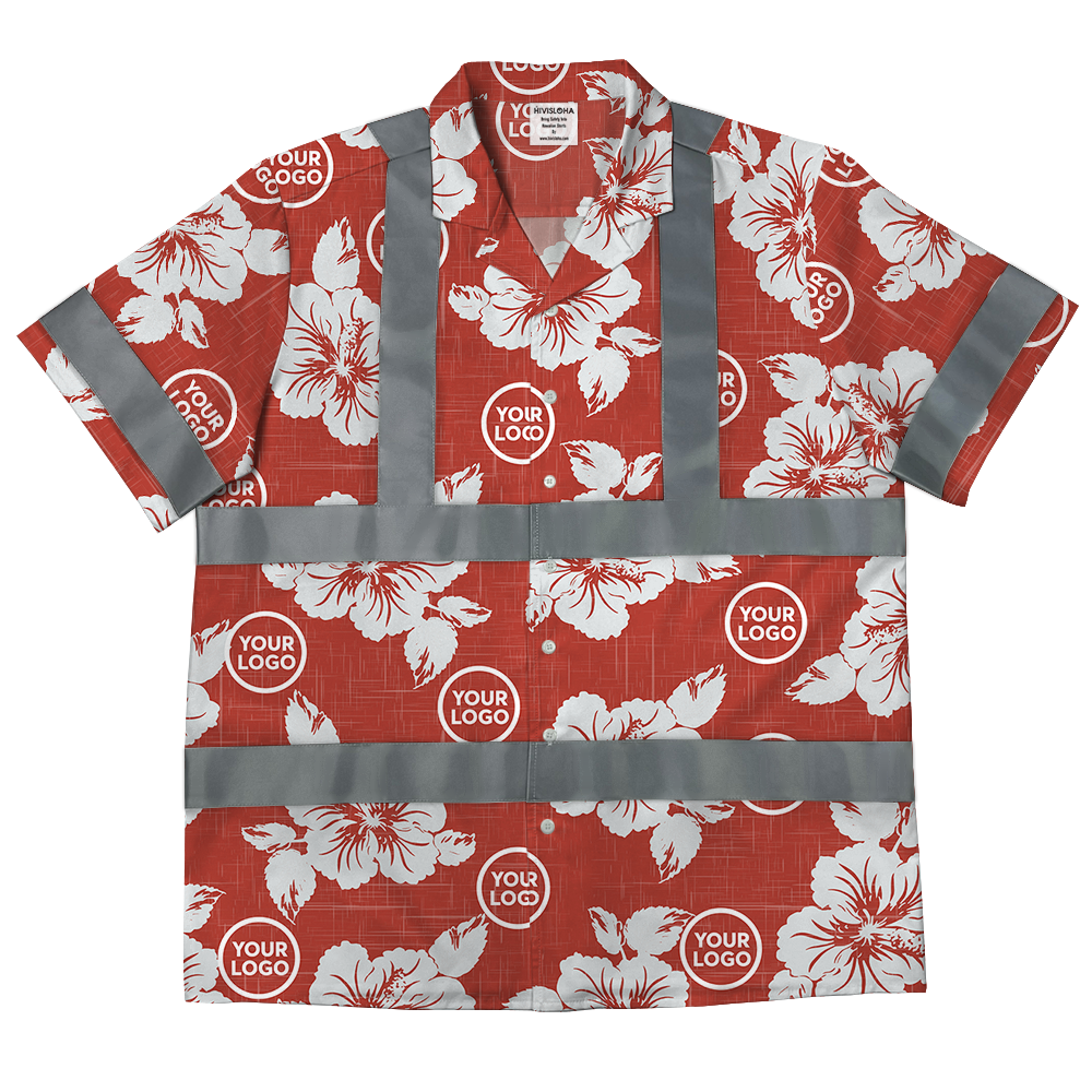 Custom Logo Red Tropical Hawaiian Shirt With Reflective Strip
