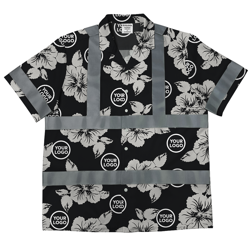 Custom Logo Reflective Black Hawaiian Shirt With Hibiscus