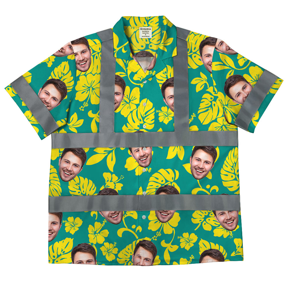 Funny Custom Face Family Hi Vis Hawaiian Shirt With Reflective Strip