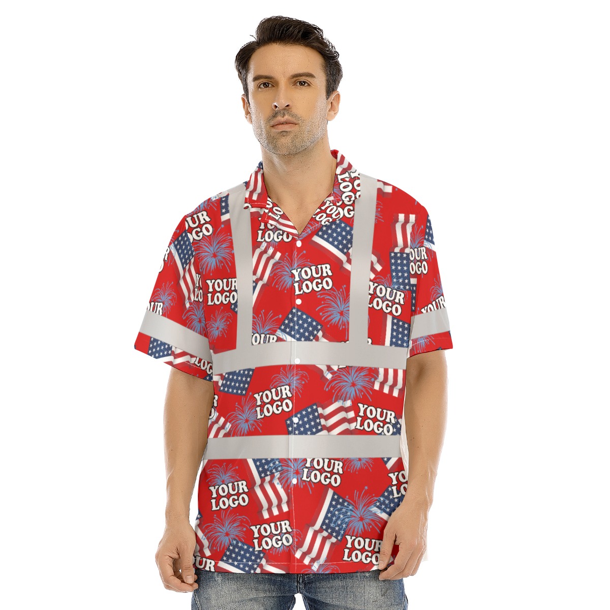 Custom Logo 4th Of July Hawaiian Shirt With Reflective Strips